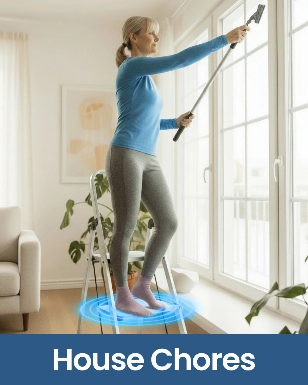 That's the Steadies difference. No more shuffling cautiously or gripping furniture. Just natural, confident movement throughout your day.